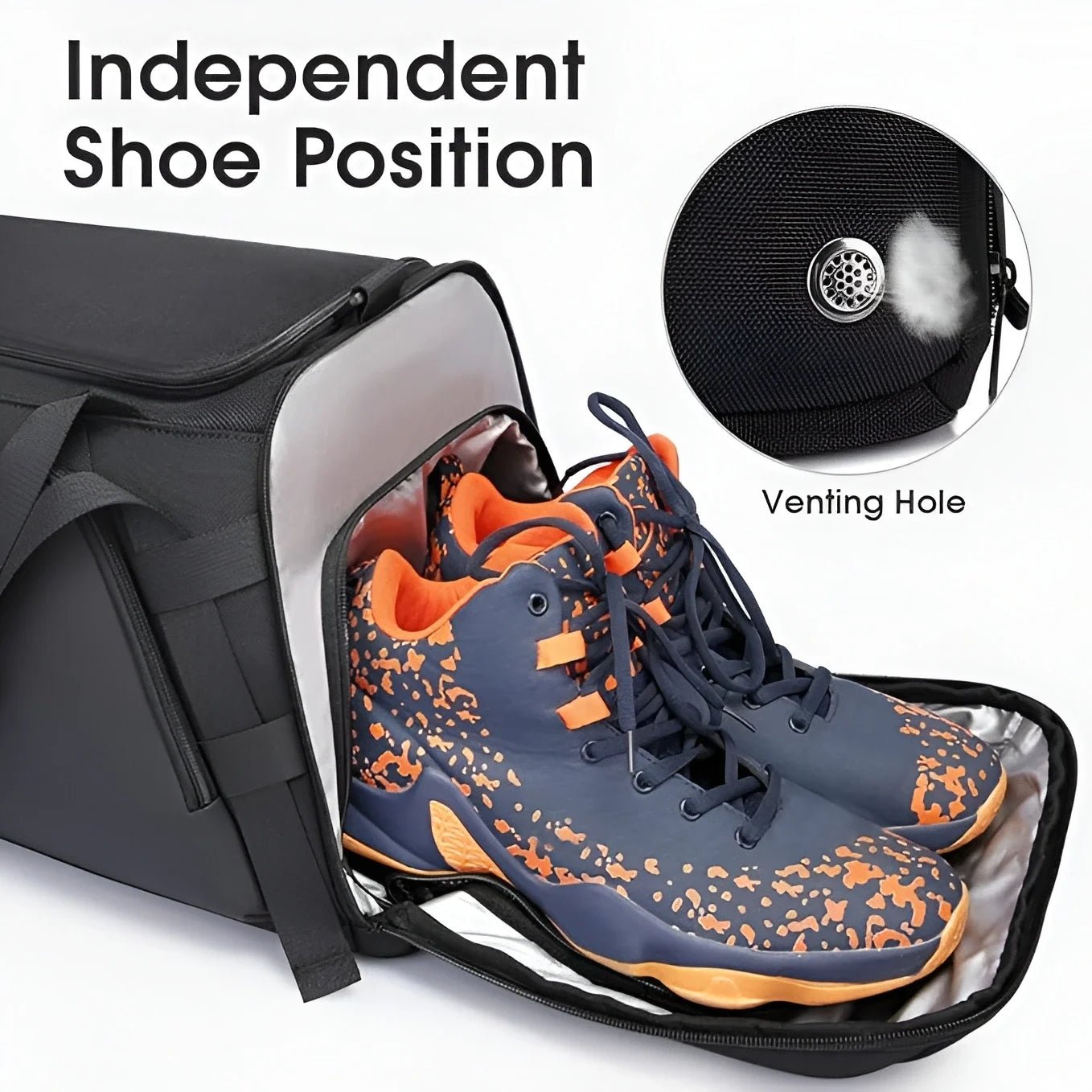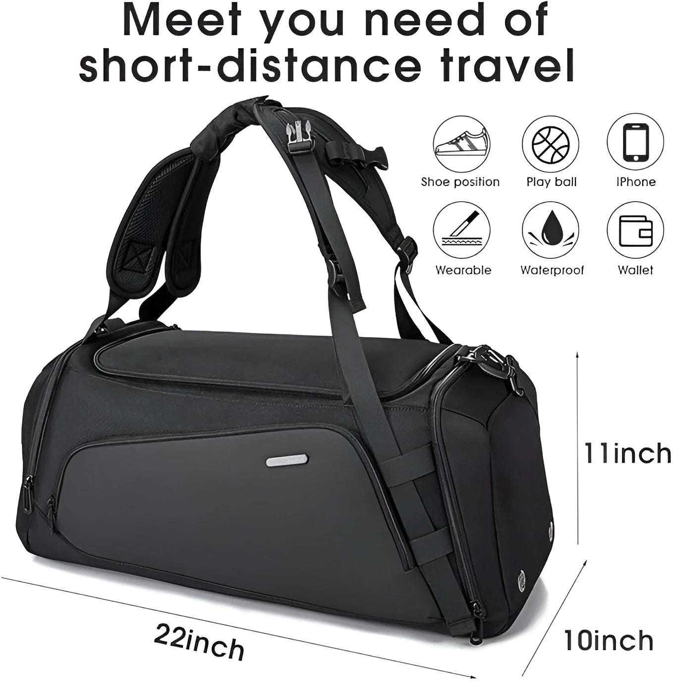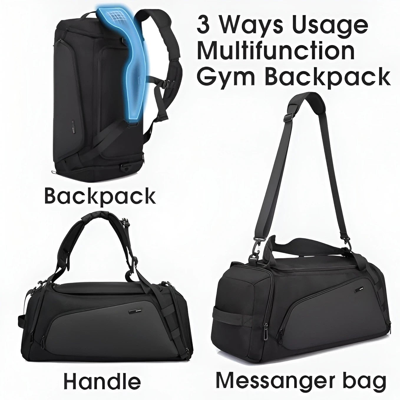 | Storage & Compartments | Main Compartment, Ventilated Shoe Pocket, Wet/Dry Separation Zone, Bottle Holder, Front Zipper Pocket |